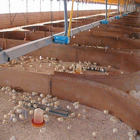 Le système Infra BAF avec suspension par câble réglable a été spécialement développé pour les poulaillers. La hauteur de suspension des poêles à gaz INFRA BAF est contrôlée par un ordinateur, en fonction de la hauteur de l'oiseau, ce qui rend la conception indispensable pour augmenter l'efficacité du poulailler.