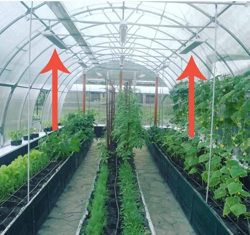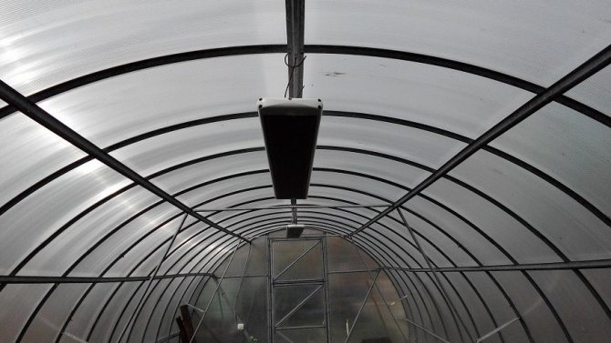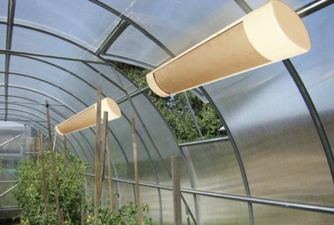 Des radiateurs peuvent être placés au plafond de la serre - lorsque les vagues couvrent tout l'espace intérieur de la pièce, la masse d'air chaud ne peut pas monter.