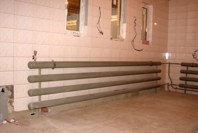 Appareils faits maison en métal ou en aluminium diffèrent des radiateurs conventionnels par leurs propres dimensions.Ils se composent de quelques tuyaux d'un diamètre supérieur à 32 mm. Pour organiser la circulation du liquide de refroidissement, les tuyaux sont reliés entre eux par des tuyaux de dérivation.