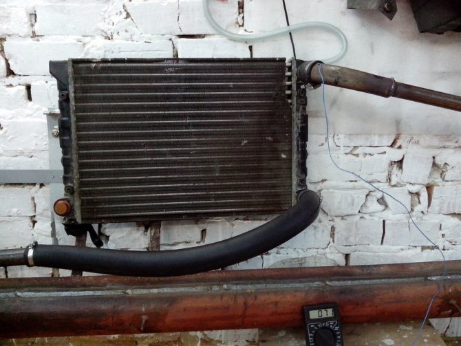 Le convecteur le plus simple est une bobine de tuyau avec des plaques pressées dessus, augmentant la surface d'échange thermique notoire. Le matériau le plus facilement disponible est l'acier. Maisons - les nouveaux bâtiments servent souvent de sources de convecteurs prêts à l'emploi pour les garagistes: les propriétaires des appartements qui les composent changent massivement les appareils de chauffage installés par les constructeurs pour les rendre plus attrayants vers l'extérieur et avec des radiateurs sectionnels à transfert de chaleur élevé.