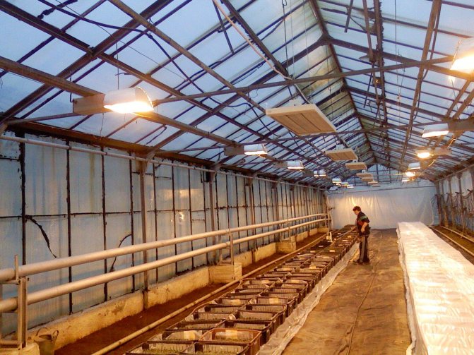 Le chauffage avec des lampes infrarouges est largement utilisé dans les serres. Pour desservir une pièce, plusieurs lampes sont généralement utilisées, qui sont suspendues à une certaine distance les unes des autres.