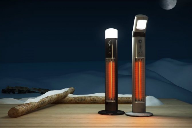 Une excellente base pour un appareil de chauffage extérieur est une lampe halogène infrarouge. Avec une courte longueur d'onde et une faible puissance, des zones relativement grandes sont chauffées avec son aide. Les appareils de chauffage, complétés par de telles ampoules, sont largement utilisés sur les vérandas, les terrasses, à proximité des piscines. Ils sont utilisés même dans les zones ouvertes des cafés et des restaurants. Les rayons infrarouges qu'ils émettent atteignent rapidement les gens, les ravissant de chaleur et de confort.