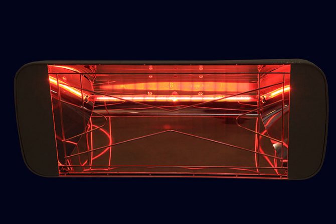 Noter! Les radiateurs infrarouges pour le chauffage des bâtiments fonctionnent sur le même principe. Ils génèrent des rayons infrarouges, qui atteignent instantanément les objets avec une perte pratiquement nulle, y sont absorbés, avec conversion ultérieure en chaleur.