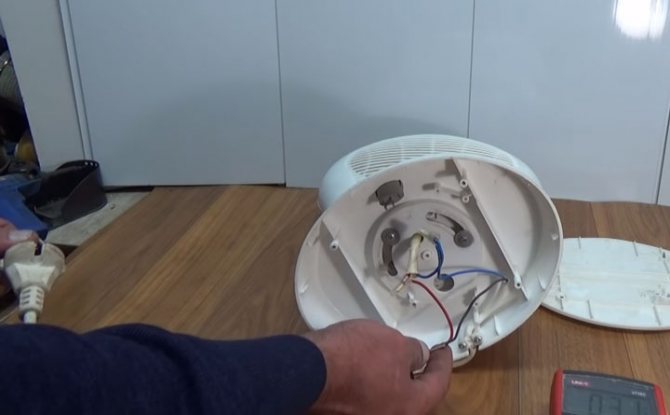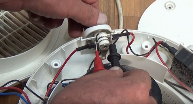 Mettez le testeur en mode de numérotation et avec les sondes, une par une, vérifiez l'intégrité des câbles d'alimentation. Pour ce faire, touchez les contacts d'entrée à l'intérieur du ventilateur et les broches métalliques de la fiche.