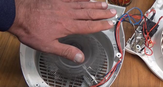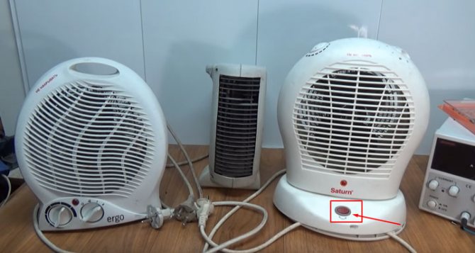 Vous allumez le radiateur soufflant froid sur le réseau, il fonctionne pendant un certain temps, après quoi les pales cessent de tourner spontanément. Les éléments chauffants chauffent encore au début, puis ils sont également coupés.