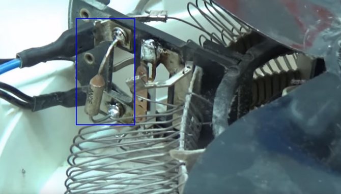 Certaines personnes confondent un thermostat avec un élément qui régule la vitesse de rotation des lames. En fait, il s'agit d'une plaque bimétallique et l'un des fils d'alimentation de la prise y vient.