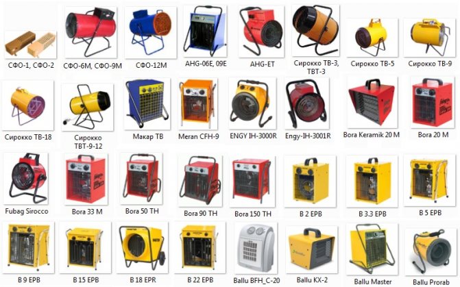 - Les aérothermes sur pied sont rendus statiques ou mobiles. Les premiers sont équipés de jambes solides, les seconds - avec des jambes ou des roues.