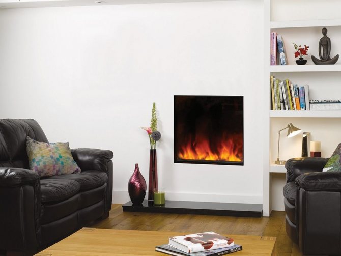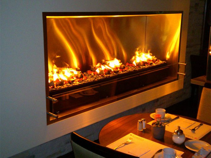 - sécurité - il n'y a pas de risque d'inflammation des éléments intérieurs, puisque le feu est artificiel, il ne s'agit que d'une image sur l'écran;