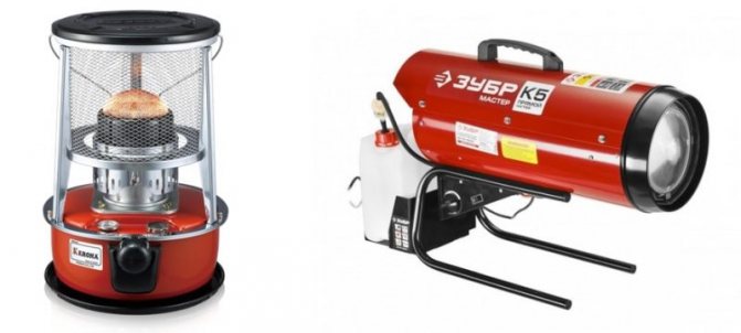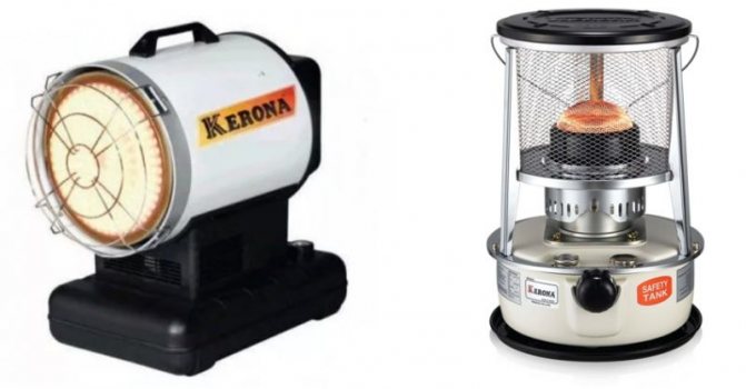 Pour ces régions, il existe des modèles de radiateurs alimentés par du carburant liquide, du gaz, etc. Cela devrait inclure un appareil de chauffage au kérosène, qui, comme un diesel, est capable de convertir le carburant en énergie thermique, fonctionnant avec un rendement élevé allant jusqu'à 99%. Ces dispositifs seront discutés ci-dessous.