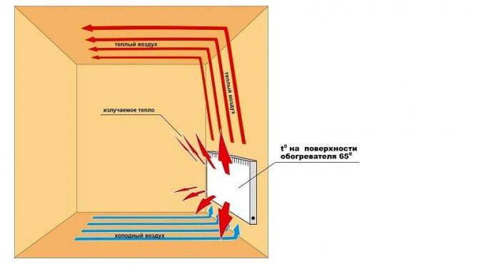 De plus, une certaine quantité de chaleur peut être transférée en raison du rayonnement thermique du panneau avant de l'appareil, qui est à proximité immédiate de l'élément chauffant. C'est la simplicité de la conception qui assure la fiabilité et la durabilité des convecteurs.