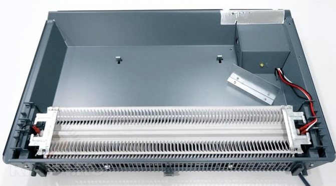 La plupart des fabricants privilégient les boîtiers métalliques, qui offrent une résistance élevée en fonctionnement et la sécurité des modules internes en cas de retournement ou d'autres contraintes mécaniques. Pour faciliter la structure, des alliages légers à base d'aluminium sont utilisés dans la fabrication du boîtier. Dans les parties inférieure et supérieure, il y a des grilles pour l'entrée d'air froid et le retour d'air chaud. - Élément chauffant électrique