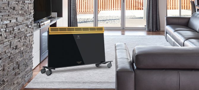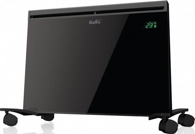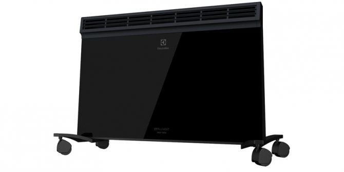 Devant nous, il y a une autre gamme de design avec un excellent design. Le panneau avant des convecteurs Brilliant Electrolux est en verre trempé durable, ce qui lui permet de résister facilement aux chocs et aux chutes. Couleur du corps - noir, également pourvu d'une protection contre l'humidité et les éclaboussures.Comme d'habitude, des éléments chauffants à action rapide avec un court laps de temps pour atteindre le mode de fonctionnement sont utilisés ici.