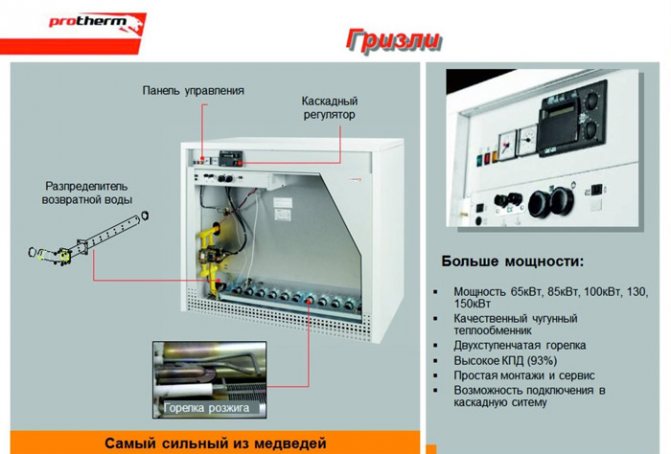 - Grizzly. Une série d'appareils avec une puissance accrue de 65 à 150 kW.Ils sont utilisés dans les grands bâtiments résidentiels, peuvent être installés dans les magasins ou les bâtiments publics.