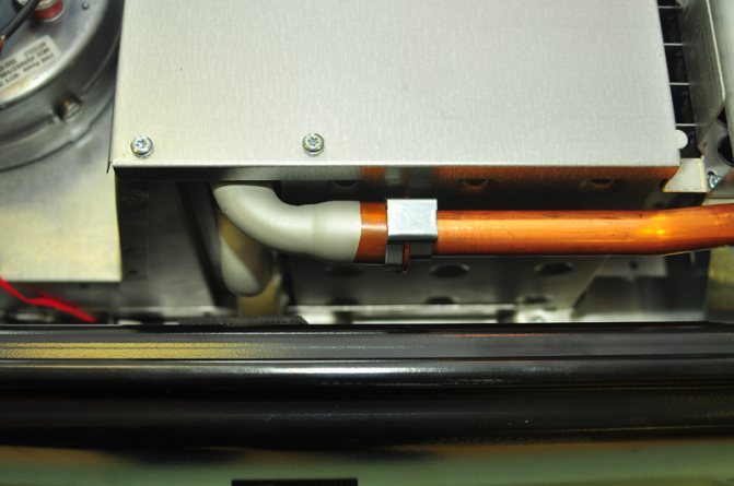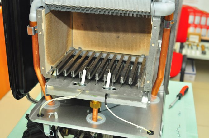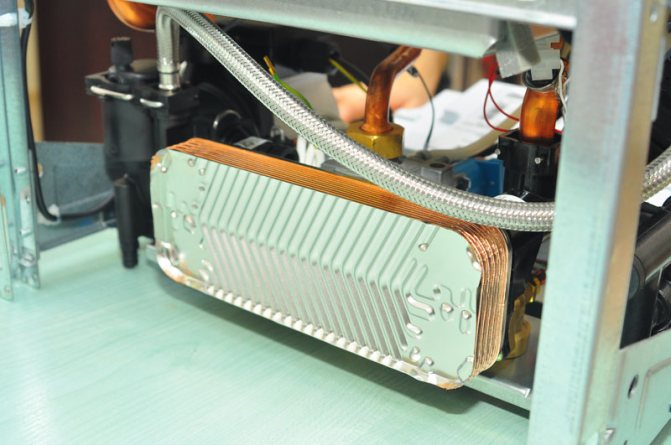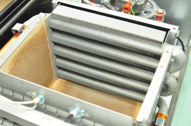 L'échangeur de chaleur secondaire de la chaudière à gaz Protherm (Proterm) Rys 24 est en acier inoxydable.