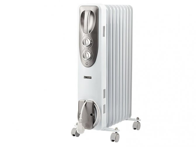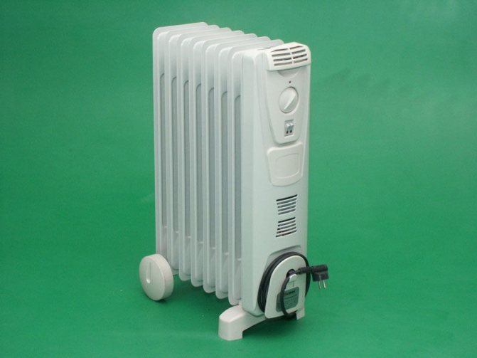 Principe de fonctionnement: lorsque la tension est appliquée à la résistance électrique, un chauffage se produit. La chaleur est transférée à l'huile. Il se dilate, devient plus léger, s'élève. A sa place vient le froid, le lourd. Cela s'avère un cycle.