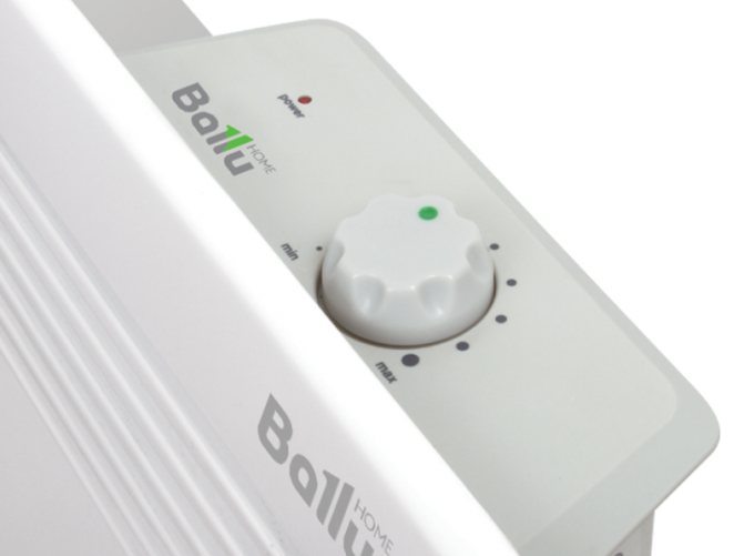 Un thermostat réglable est fixé au couvercle en plastique pour régler la température du boîtier. La plaque bimétallique, lorsqu'elle atteint la température de consigne, ouvre les contacts d'alimentation, mettant le radiateur hors tension. Lorsque la température baisse, la plaque refroidit et active les contacts. Certains éléments chauffants ont deux spirales, ils sont connectés via des interrupteurs à clé situés sur le corps.