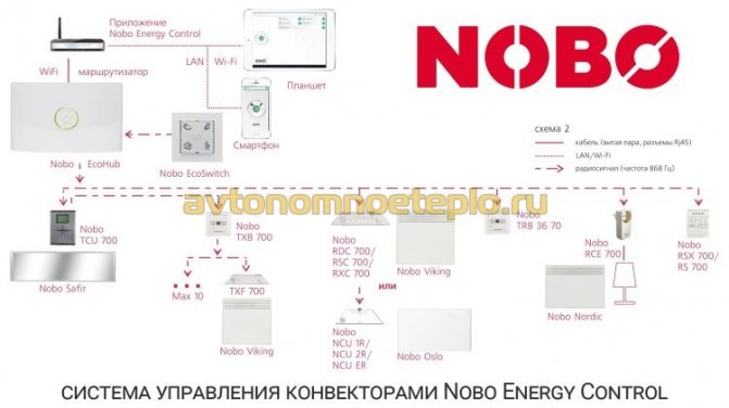Les convecteurs électriques Nobo n'ont pratiquement pas d'analogues en termes d'apparence, de performances thermiques et de sécurité. Il convient de mentionner séparément le contrôle simple et pratique à la fois des appareils individuels et de plusieurs appareils de chauffage connectés au même réseau.