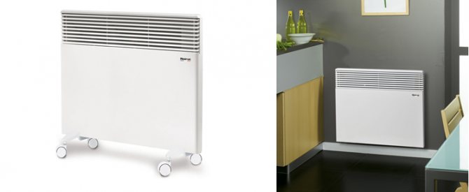 - Apparence - vous pouvez choisir à la fois des modèles classiques et des convecteurs électriques muraux minces Nobo, réalisés sous forme de panneaux. Les radiateurs en verre sont particulièrement populaires car ils peuvent décorer l'intérieur. Les pieds pour l'installation du convecteur au sol sont conçus pour les modèles C4F, C4N, C4E, C2F, C2N, C2E, Safir II. Pour le reste de la série, un support mural spécial est fourni.