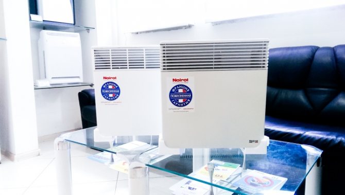 et Contrairement aux radiateurs à huile, les convecteurs électriques ne brûlent pas d'oxygène dans la pièce pendant le fonctionnement, ce qui contribue au maintien d'un microclimat sain et favorable.