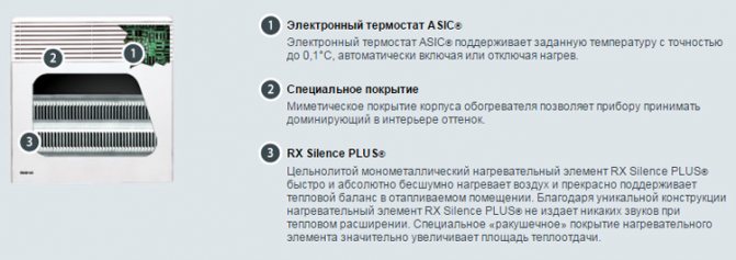 La consommation d'énergie est réduite de 5 à 10 % par rapport aux analogues grâce au contrôle électronique. Les modèles avec thermostat à distance permettent d'installer des panneaux chauffants à n'importe quelle hauteur requise.