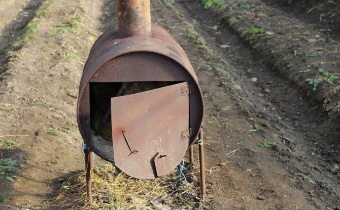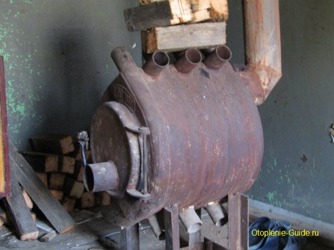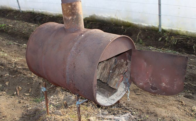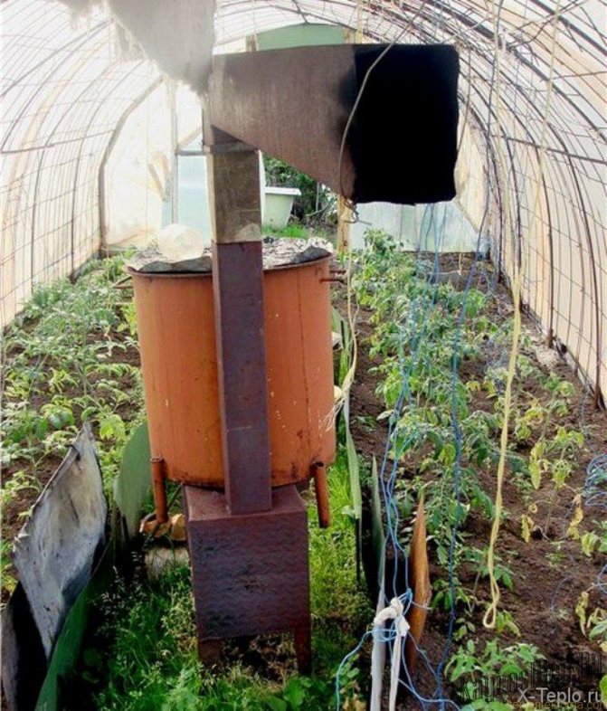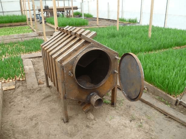 Photo 2. Chauffage de la serre avec un poêle à combustible solide. Il est nécessaire de surveiller en permanence la disponibilité du carburant.