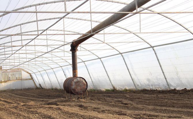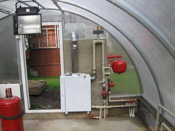 Le bâtiment de la serre est installé Chaudière (combustible solide, gaz) ou four fait maison avec cuve intégréeconnecté au système de tuyauterie de chauffage.