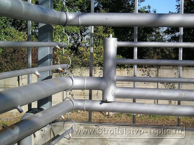 Étape 3. Raccordement des radiateurs au système de chauffage. Les radiateurs sont montés sur les murs, les répartissant uniformément sur la serre. Une vanne d'air est installée sur chaque radiateur - un robinet Mayevsky, ainsi que des vannes avec lesquelles vous pouvez couper le débit d'eau dans le radiateur. Les radiateurs sont montés selon le schéma sélectionné. Pour le système de chauffage, des tuyaux Ø20-Ø25 mm sont utilisés.
