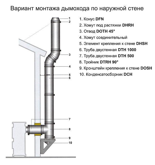 Étape 3. Raccordez la cheminée du diamètre requis à la cheminée à l'aide d'un scellant résistant à la chaleur. La cheminée doit être installée conformément au schéma. Le rétrécissement de la cheminée n'est pas autorisé.