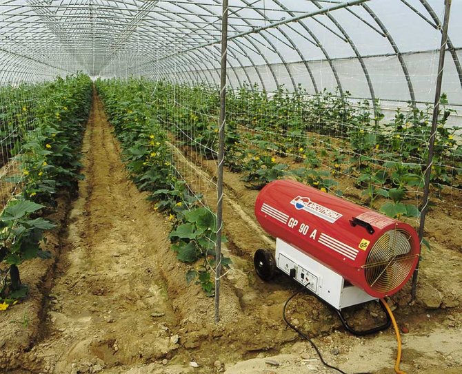 L'utilisation de radiateurs à gaz vous permet de créer des conditions confortables pour la croissance des plants et le maintien de la température dans la serre dans les cas où il n'est pas possible de réaliser un chauffage centralisé ou électrique. Cette méthode s'est généralisée en raison de sa mobilité et de son faible coût.