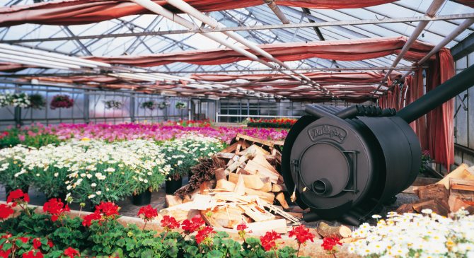 Chauffage au poêle dans une serre