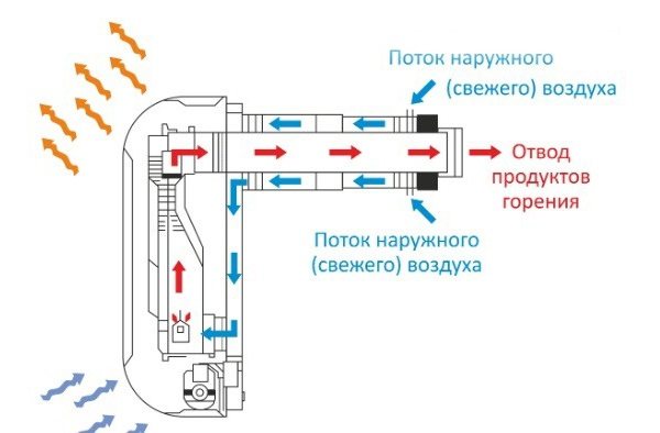 Pour les chaudières à gaz, une cheminée coaxiale est utilisée. Il est sorti directement à travers le mur à l'endroit où la chaudière est installée. En raison de la combustion complète du gaz dans les chaudières, la sortie est de la vapeur d'eau et du dioxyde de carbone avec une faible teneur en autres éléments, de sorte que la fumée des chaudières à gaz n'est pas dangereuse pour les parois de la serre et les organes respiratoires des personnes.