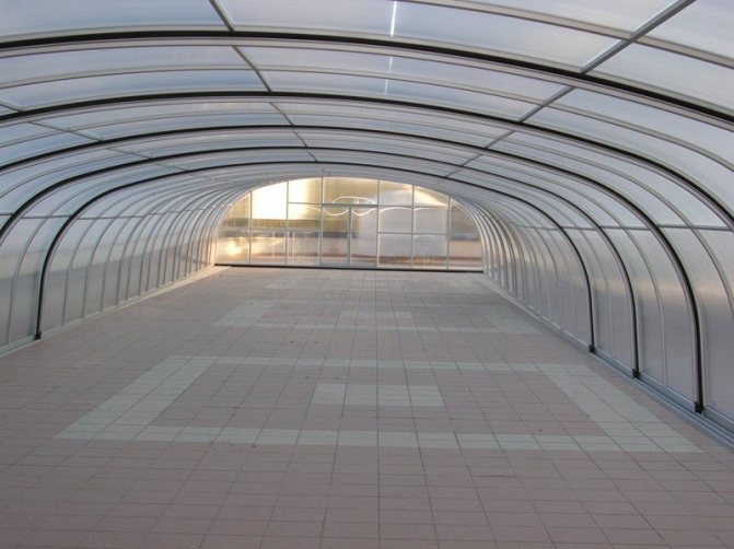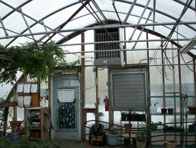 - La conception de la serre est préférable d'être semi-circulaire avec une voûte voûtée. Cette forme réduit les pertes de chaleur dans la pièce.