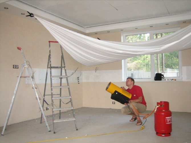 Pour un tel travail, des pistolets infrarouges sont utilisés, qui peuvent être dirigés directement vers un objet (mur). Les pistolets thermiques électriques sont également largement utilisés, moins souvent ceux à gaz, qui ont plus de puissance, mais nécessitent du gaz ballon.