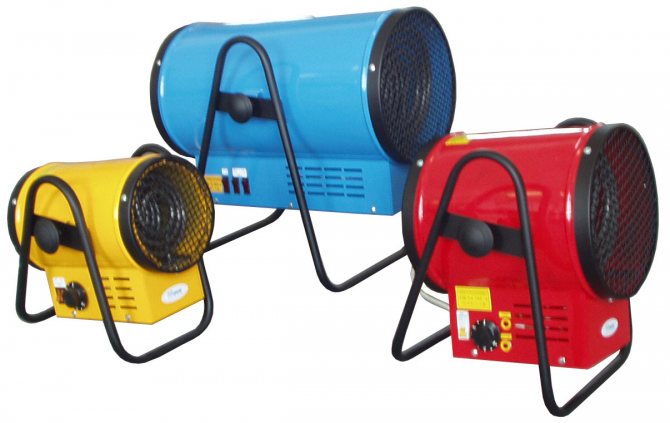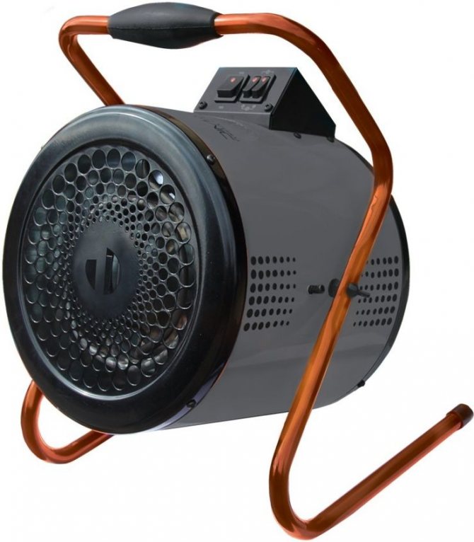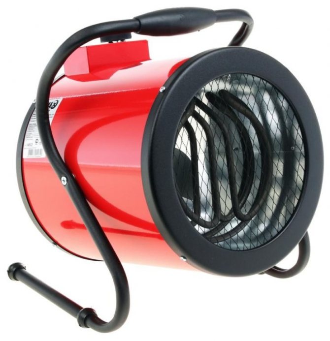 Ce sont les appareils les plus polyvalents et les plus faciles à utiliser... Une spirale en métal réfractaire ou un élément chauffant tubulaire étanche est chargé de chauffer l'air. La deuxième option est considérée comme plus préférable en raison de sa durabilité et de sa sécurité plus élevées. Dès que vous avez branché le pistolet dans une prise et réglé la température de chauffage de l'air, le ventilateur commence à pomper de l'air vers la spirale ou l'élément chauffant. Un flux d'air chaud sort de l'appareil et la pièce se réchauffe instantanément. L'utilisateur peut utiliser le thermostat pour régler la température de chauffage maximale autorisée. Lorsqu'il est atteint, le chauffage s'éteint, mais le ventilateur continue de fonctionner.