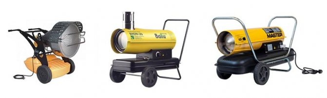 Les pistolets diesel et multi-carburants sont considérés comme les plus gros, car ils ont également un réservoir de carburant. Lorsqu'il est complètement rempli de carburant liquide, le poids de l'appareil augmente. Déplacer un canon à combustible liquide lourd n'est pas facile, et si une unité à chauffage indirect est sélectionnée, il n'est pas du tout possible de déplacer l'appareil de sa place, car il est connecté à la cheminée.