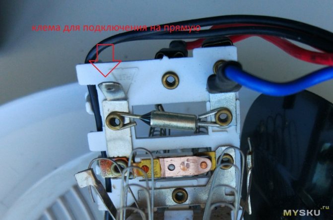 - Les images montrent: il y a deux interrupteurs, chacun a une phase, la masse de l'élément chauffant, un fil du relais thermique. Cette redondance permet aux voyants lumineux de s'allumer. Une phase ne suffit pas pour produire l'effet Joule-Lenz. Le fabricant ne sait pas à l'avance de quel côté l'utilisateur branche la prise, si le fil bleu (rouge) sera neutralisé et est exposé à 230 volts.
