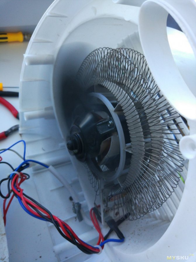 ... En plus des éléments chauffants, un moteur électrique avec une turbine de ventilateur est installé à partir d'eux, dirigeant l'air chaud dans la direction souhaitée.