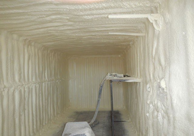 La pulvérisation PPU protège le métal de la corrosion et des bruits extérieurs. Pour le travail, des cylindres en mousse de polyuréthane sont utilisés. Il existe une option moins chère - la pulvérisation de mousse à deux composants à l'aide d'un équipement spécial. Ce matériau coûte moins cher, mais l'équipement pour travailler avec lui est très coûteux. Par conséquent, il est préférable d'utiliser les services de constructeurs ou de louer un outil.