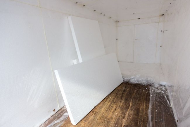 L'isolation externe implique une décoration complète des parois de la remorque avec du penoplex, alias polystyrène expansé, ou laine minérale. Tout d'abord, le cadre de lattage est installé, le matériau de revêtement est fixé dessus.