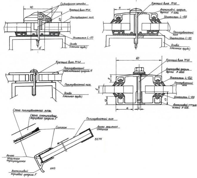Un petit espace de 4 mm doit être laissé entre la feuille de polycarbonate et le cadre en aluminium - cette taille est considérée comme optimale par de nombreux spécialistes de la construction.
