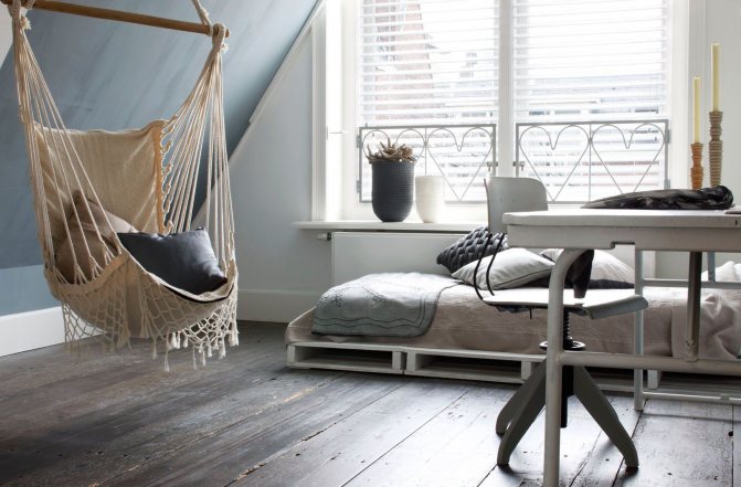 Vous pouvez décorer cette pièce selon vos envies. Il sera plus confortable de le combiner avec un cinéma maison, de mettre un grand canapé confortable ou des fauteuils poires.