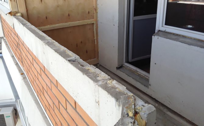 L'une des principales tâches à résoudre lors du vitrage du balcon P-44 est l'élimination des zones ouvertes à l'endroit où se trouve le passage du feu entre les balcons adjacents. Ici, le mur principal de la maison n'atteint pas le parapet d'environ 70 centimètres. Et le passage lui-même est fermé par une cloison. Quelqu'un utilise une doublure en bois ou en plastique pour cela. En fait, ces options ne sont pas bonnes. Le fait est que l'arbre pourrit avec le temps et que le revêtement en plastique peut s'envoler par vent fort.Nous abordons la solution de ce problème différemment - nous fermons toutes les fissures avec de la tôle. Cependant, il existe une autre option ici - faire une maçonnerie à partir d'un bloc de mousse. Il est idéal pour un balcon chaleureux.