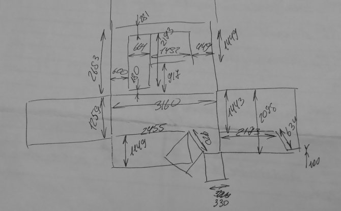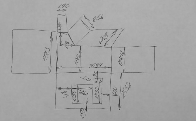 Pour vous, People's Windows a réalisé un dessin en proportion réelle. Les mesureurs utilisent généralement de tels balayages. Ici, les dimensions des murs, du sol, du plafond sont indiquées. Ce sont des mesures internes. Tout est en millimètres - comme sur les dessins. Les informations sont les nôtres et ont été collectées au fil des années de travail.