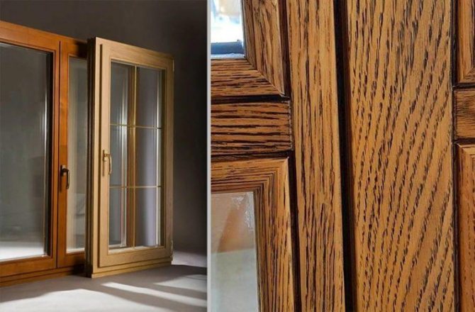 - Chêne. La fiabilité traditionnelle de ce matériau en a fait un nom familier. Une belle fenêtre avec une texture de bois prononcée deviendra un élément chic de l'intérieur et des légendes se forment sur la durabilité du chêne;