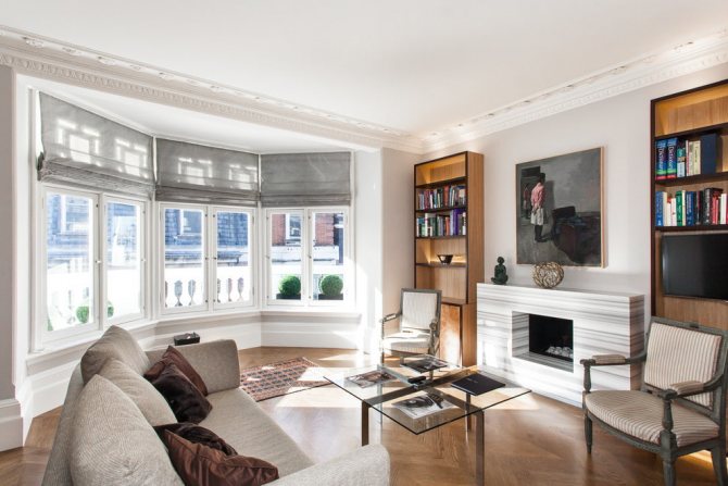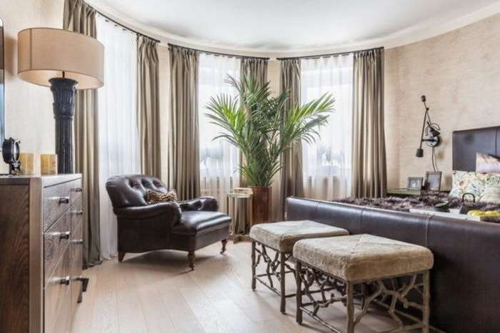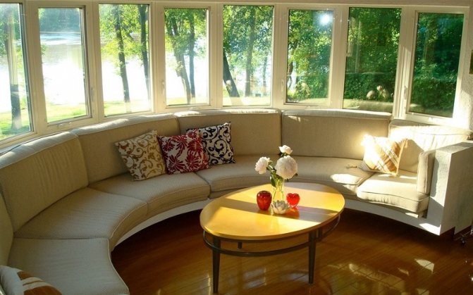 - la baie vitrée attire le regard par sa forme et son vitrage inhabituels. Cela peut et doit être utilisé dans la décoration intérieure du salon. Une salle pour les réceptions de cérémonie et un belvédère léger et gracieux, surtout s'il y a un beau jardin à l'extérieur de la fenêtre, donnent un coup d'œil à la saillie. Il n'y a aucune restriction fonctionnelle ;