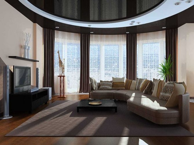 En toute justice, les inconvénients des protubérances doivent être notés. Ceux-ci incluent des problèmes techniques. Par exemple, vous devez commander des fenêtres ou des tringles à rideaux sur mesure. Les travaux de rénovation deviennent de plus en plus compliqués, la sélection des matériaux pour le projet de conception du salon avec une baie vitrée.
