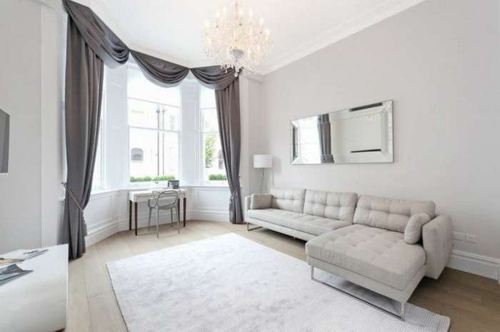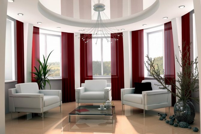 Les toiles de ce type donnent à l'intérieur une belle allure, soulignent le style. L'utilisation de longs rideaux dans la conception doit prendre en compte le côté pratique du fonctionnement de la pièce.