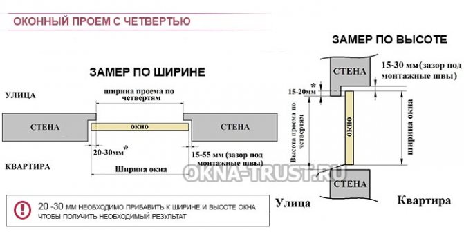 Avant de mesurer la fenêtre en PVC, décrivez d'abord le produit sur papier. L'étape suivante consiste à marquer les retraits pour l'installation (jusqu'à 30 mm), puis à dessiner des lignes imaginaires. Ensuite, chaque côté est mesuré et les données obtenues sont entrées dans le dessin schématique. La même chose doit être faite lors de la mesure des fenêtres triangulaires.