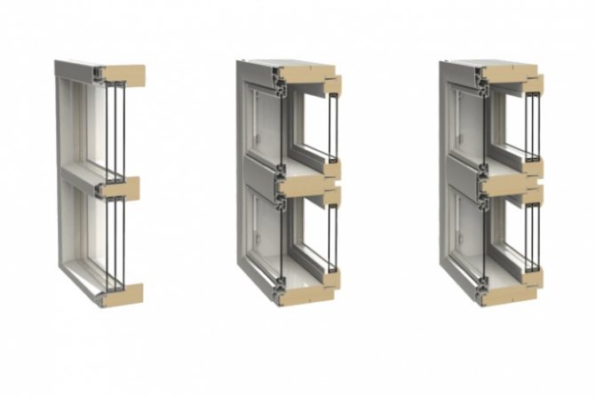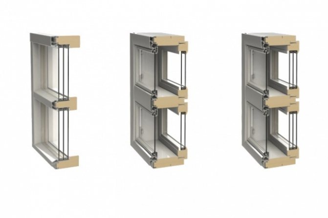 Mais vous pouvez également trouver d'autres variantes. Ces modèles ont souvent des fenêtres à double vitrage à une chambre, qui sont installées à la fois sur le châssis intérieur et sur l'extérieur.