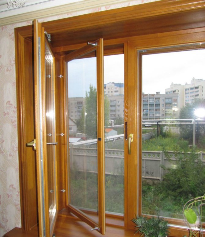 La différence entre ces fenêtres et les fenêtres classiques à deux cadres est que les deux cadres peuvent être ouverts simultanément. Pour cela, un support spécial est installé (voir photo). À la demande du client, une fenêtre à double vitrage installée dans un cadre interne en bois peut avoir différentes formules. Le verre du pare-brise est installé dans le cadre extérieur (rue). Ce cadre est entièrement en aluminium pour éviter les influences extérieures, le cadre de la fenêtre est fermé avec une garniture en aluminium. Ces fenêtres sont la meilleure solution pour le vitrage des maisons de campagne et des appartements urbains.